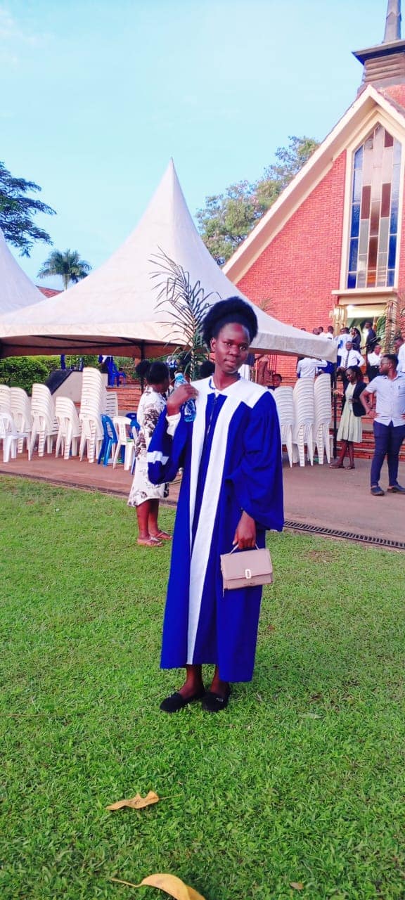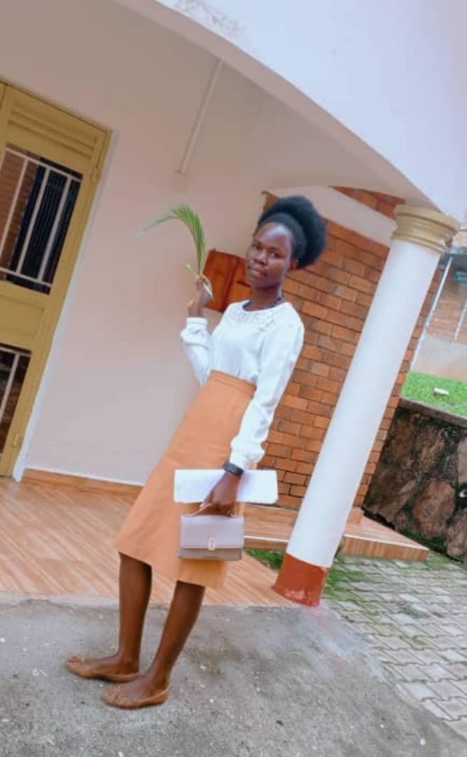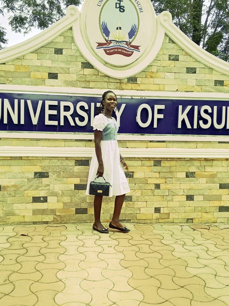 Seraphine przy wejściu na Uniwersytet w Kisubi